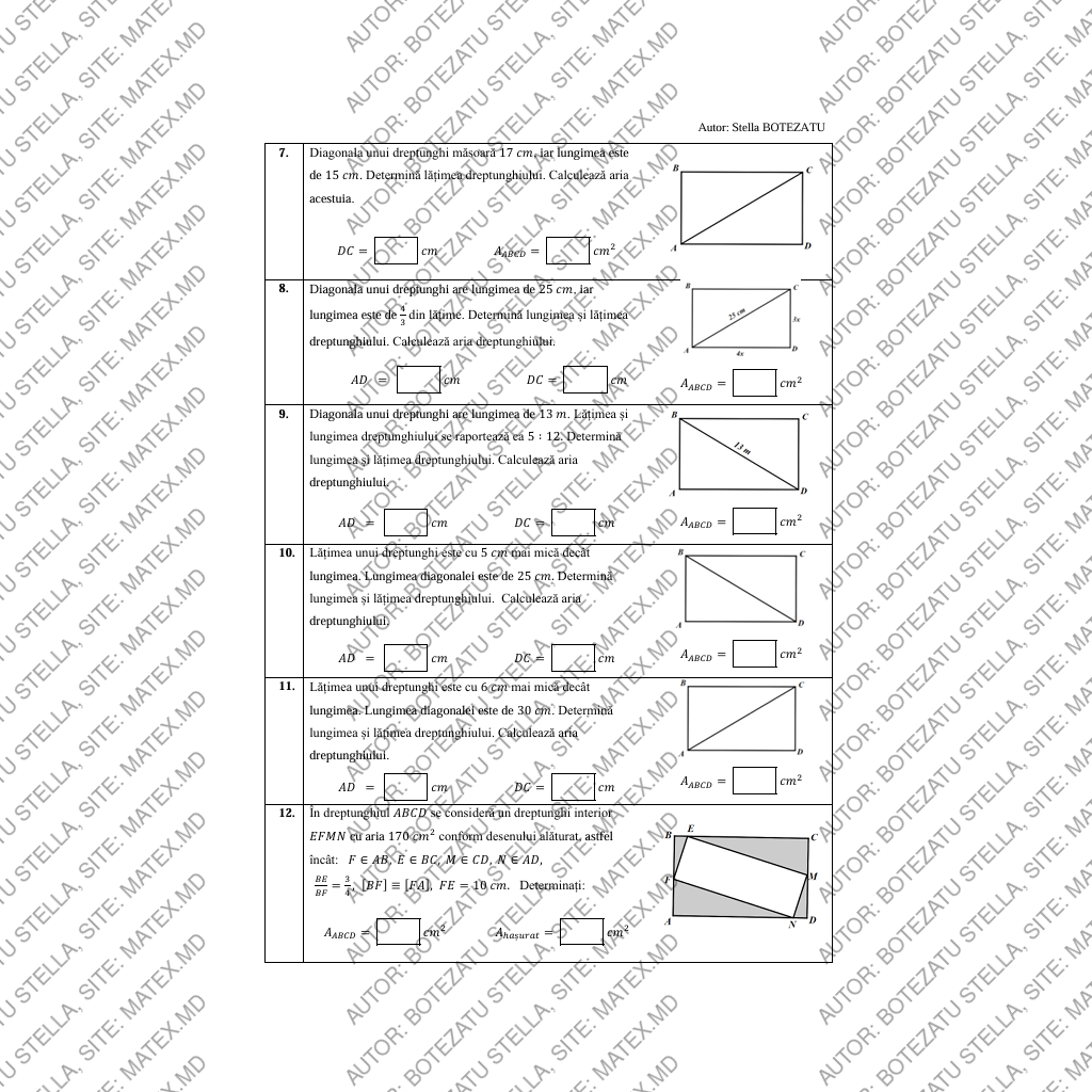 • determine lungimea laturii pătratului din arie sau diagonală;
